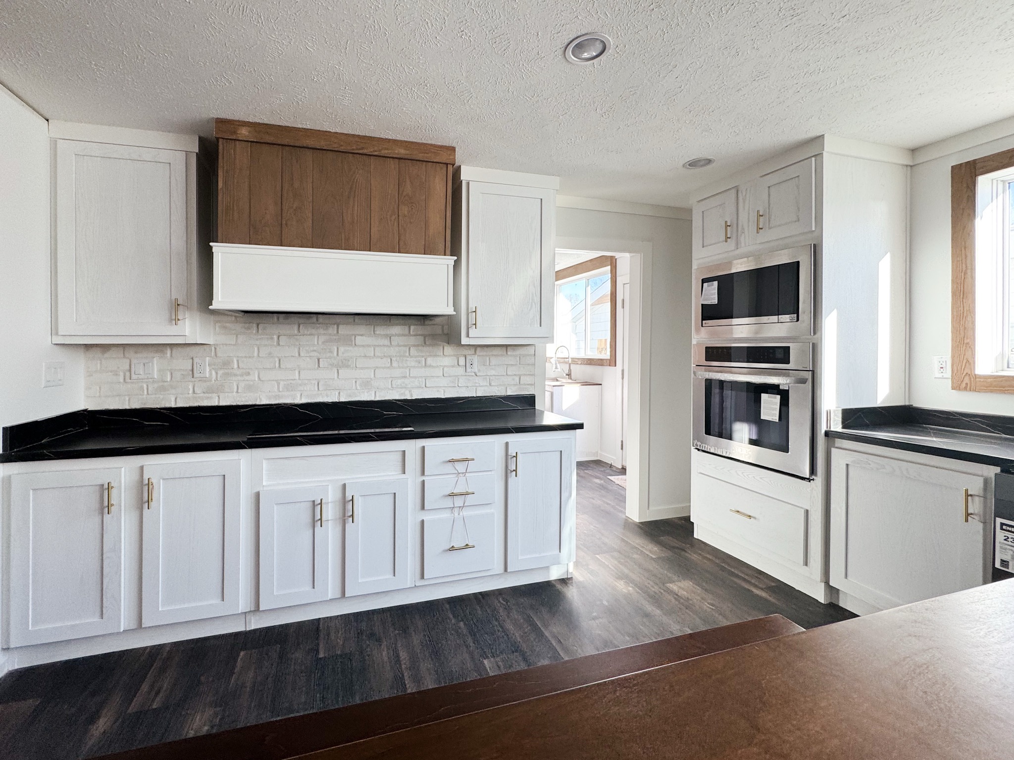 Kitchen Additional Specs: Lined Cabinets w/Adjustable Shelving / Hidden Cabinet Hinges / Decorative Pulls / Stainless Microwave